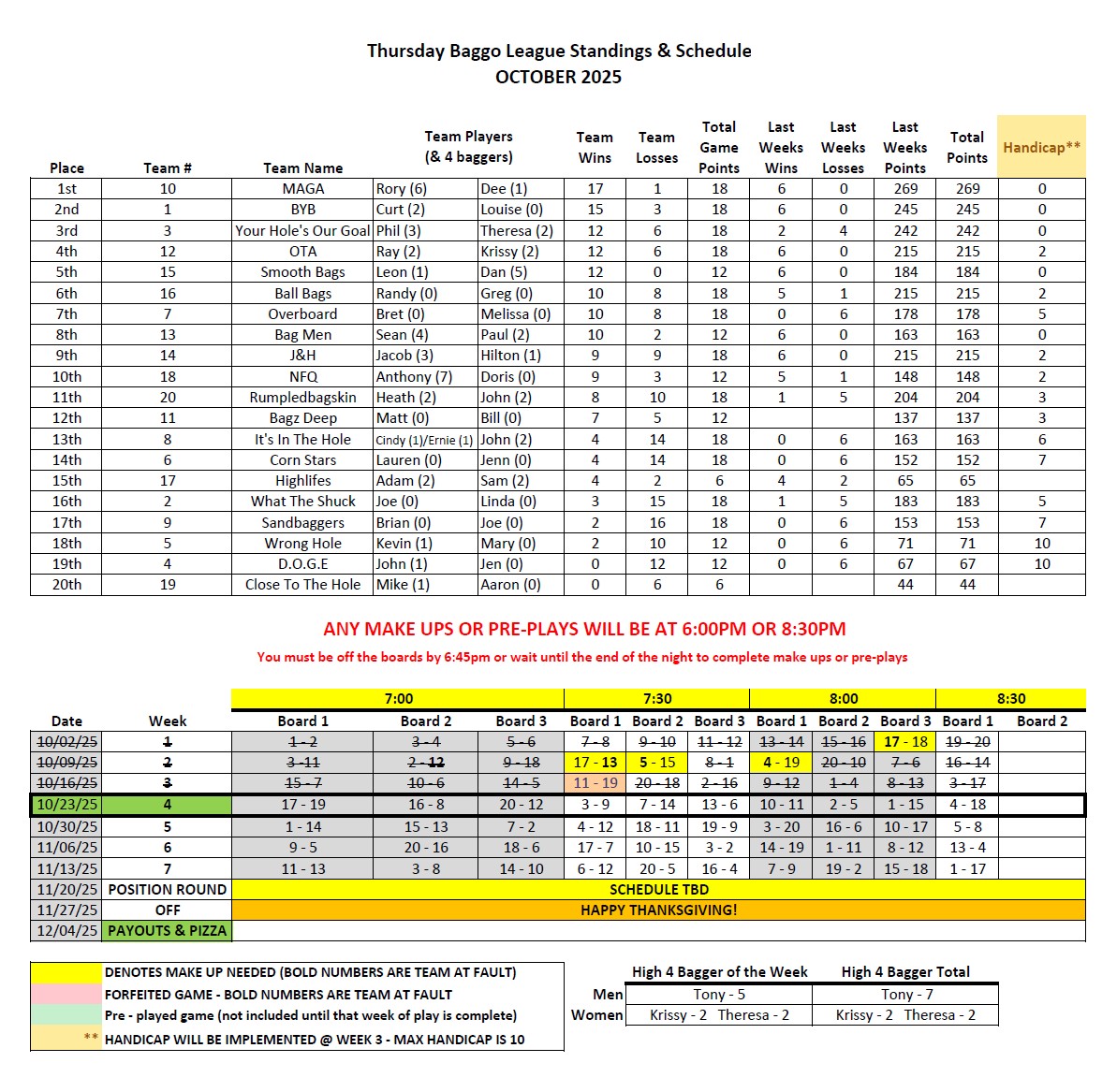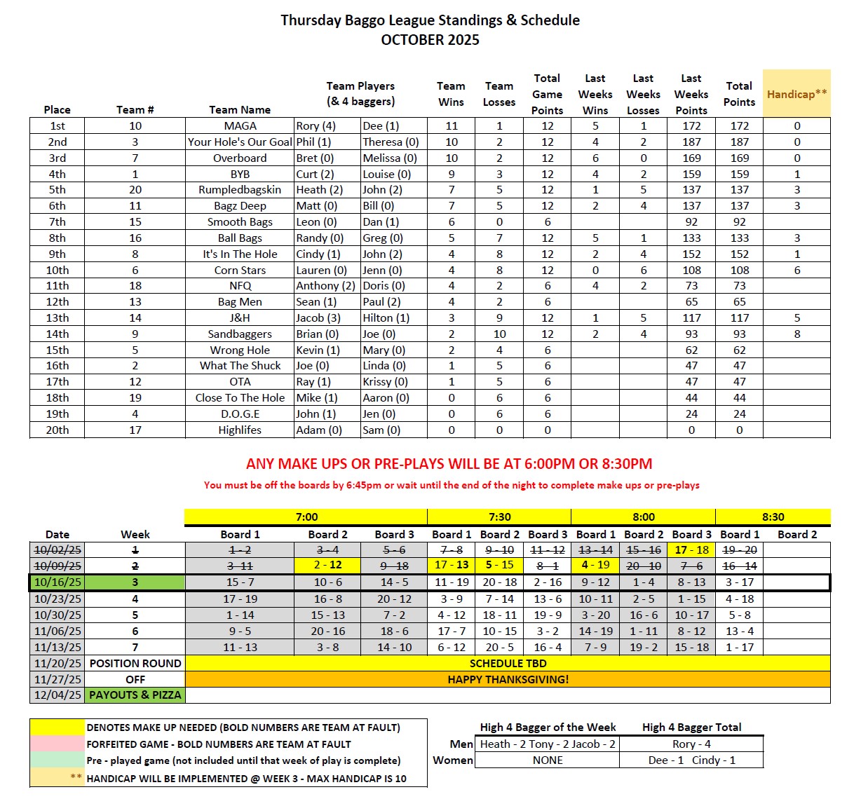 Team 2 v Team 12 from Week 2 – Scheduled for Week 3 10.16.25 @ 6:30 on Board 2