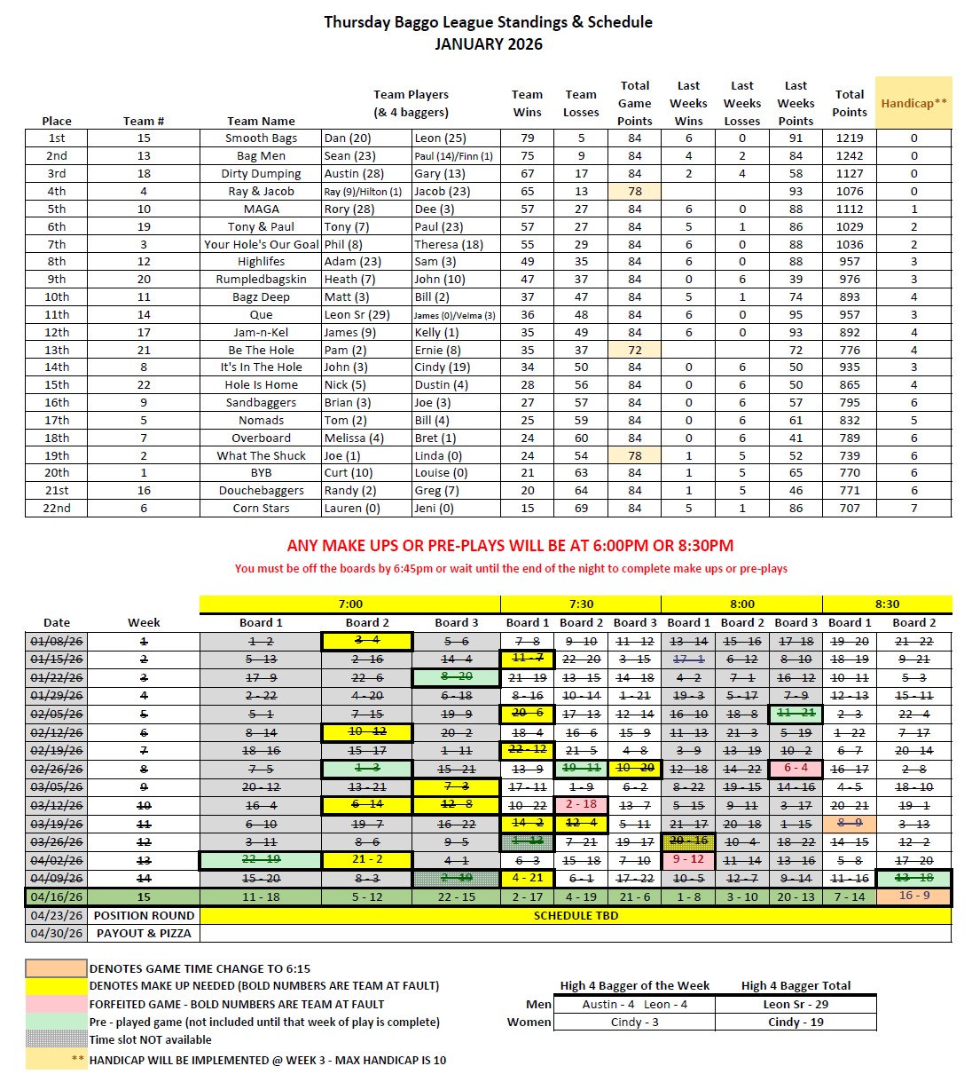 Team 4 v Team 21 – Makeup From Week 13 – Scheduled for Week 15 4.16.26 @ 6:15 on Board 1